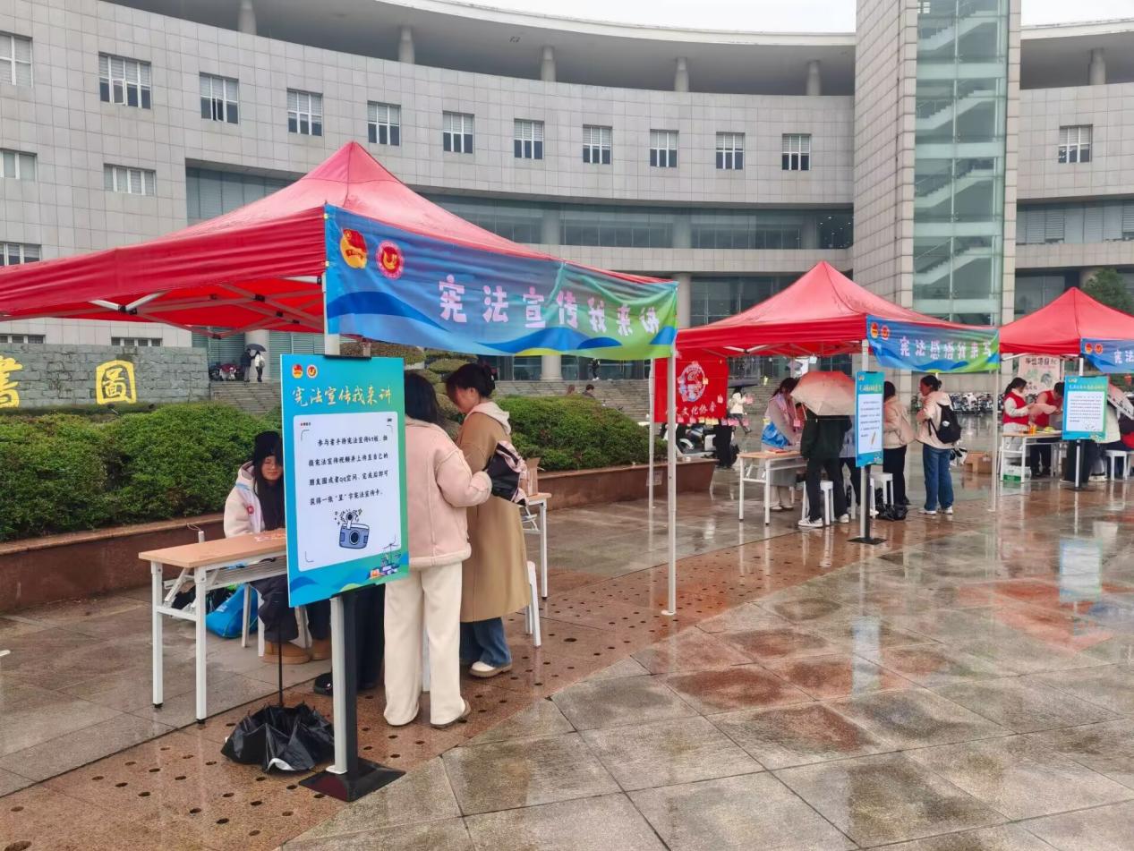 本网讯(通讯员:晏雅娴、张肖颖)2024年12月4日下午,以“法治青春,与法同行”为主题的湖北省青少年“12.4”宪法日示范活动在400全讯白菜网官网成功举办,省团委副书记蔡伟伟,校党委副书记汪达等领导出席活动。其中,由600全讯白菜官方网站方圆法研社、600全讯白菜官方网站青年志愿者协会、经院书画协会和历史文化协会联合承办的“法遇非遗,‘经’彩传承”普法集市活动在400全讯白菜网官网图书馆前中兴广场举办。