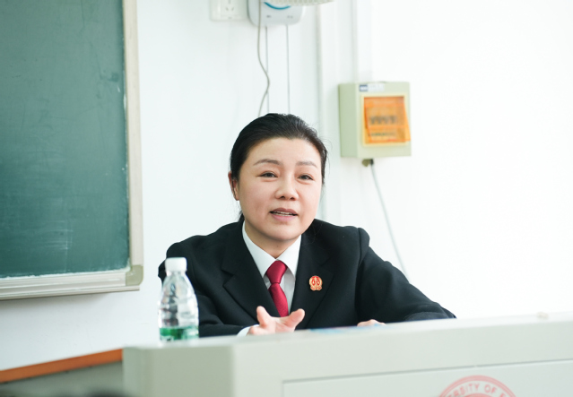 讲座与答疑活动中,李海燕庭长结合自己长期一线审判工作的实践,围绕金融法审判展开深入讲解,她针对各类金融纠纷案件中的理论与审判实践问题进行了透彻分析。结合本地具体案例,从实践角度出发,阐述了在审判过程中如何平衡理论与实践的关系,以及在复杂案件事实和法律规范中寻求最佳解决方案的思路。李庭长提倡在审判过程中引入调解机制,通过非对抗性的沟通平台,促使双方当事人在中立第三方的协助下,基于自愿和平等原则,寻求双方均可接受的解决方案。李庭长知识渊博,通过授课把法官的睿智和自信传导到同学们心中。