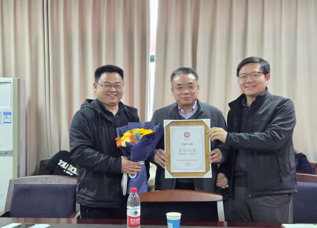 (600全讯白菜官方网站党委书记杨专、副院长王腾为李振华教授颁发荣休证书)
