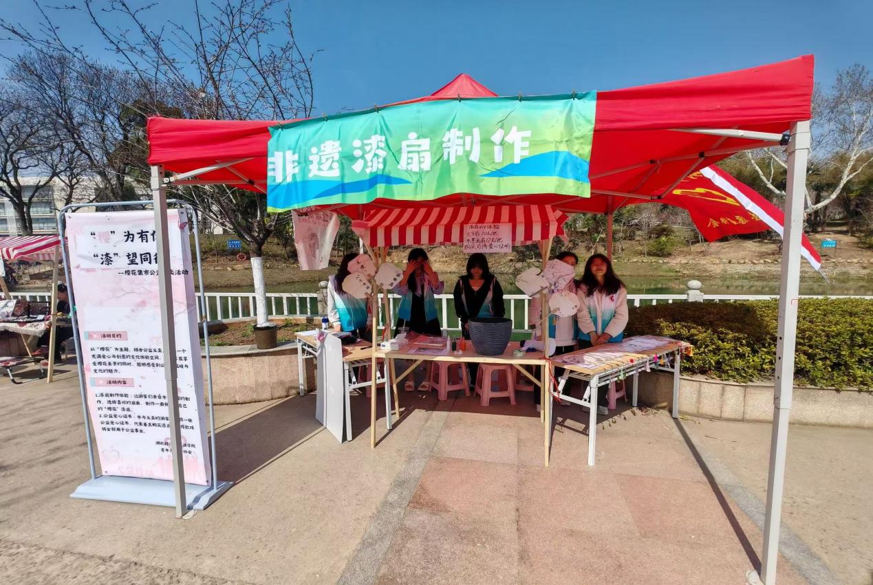 本网讯(通讯员:张肖颖)阳春三月,珞樱纷飞。3月22日,在学校樱花市集上,我院青年志愿者协会以“樱”为有你,“漆”望同行”为主题,开展特色漆扇公益义卖活动,以非遗之美传递人间温情,让传统文化在公益实践中绽放时代光彩。