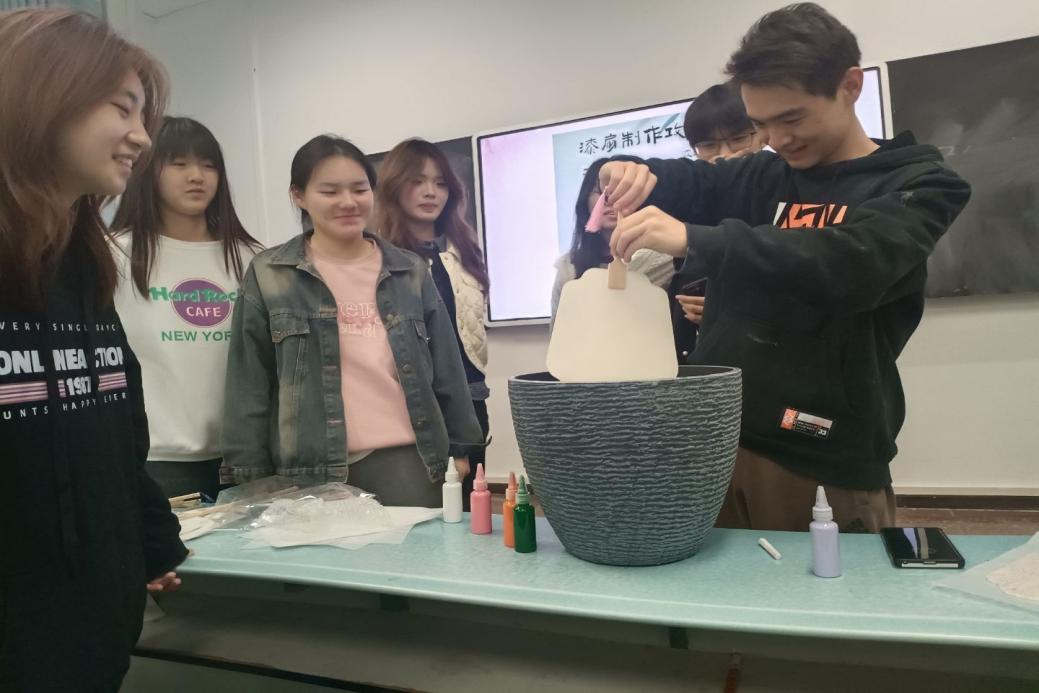 培训会上,孙马晓龙通过PPT,详细地介绍了活动的背景、目的、内容和岗位要求。他生动地讲解了活动的流程,包括游客如何购买漆扇、挑选颜料、制作漆扇以及填写爱心证明,为了让志愿者们更直观地感受漆扇制作,孙马晓龙还向同学们演示了漆扇制作的全过程。