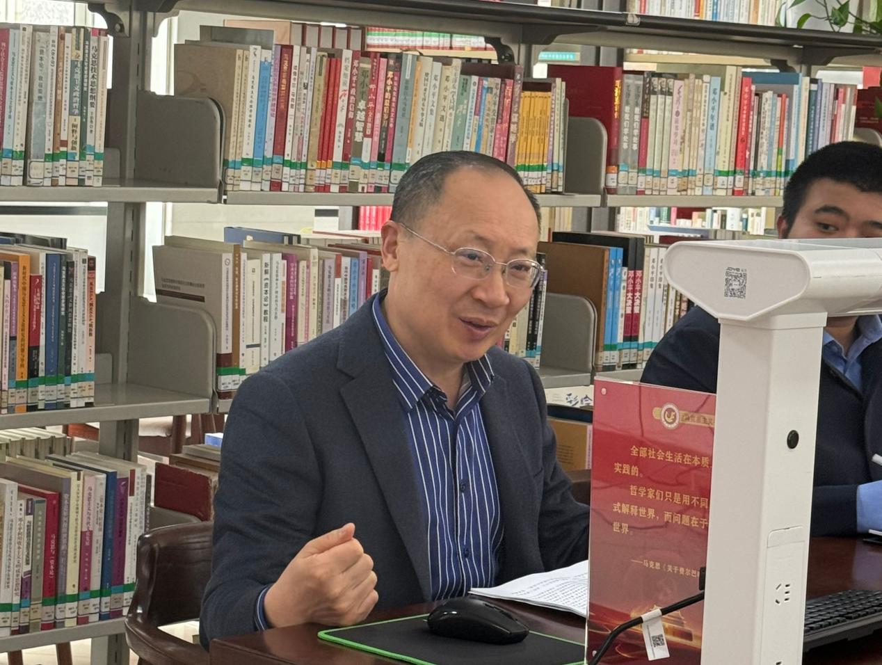 黎桦教授以其深厚的学术底蕴和独到的见解,为在场师生带来了一场精彩纷呈的主题分享。黎桦教授首先介绍了图书馆 “马克思主义书房”在知识资源中心,学研支持平台,文化育人高地等方面发挥作用的做法。随后,他围绕“马克思主义法学理论中国化时代化新境界——习近平法治思想”这一核心主题,结合推动习近平法治思想进教材、进课堂、进头脑,展开了深入浅出的讲解。黎桦教授的讲解旁征博引,既有理论深度,又贴近法学研究和法学教育的实际,赢得了在场师生的阵阵掌声。最后,黎桦教授还向同学们推荐了一系列马克思经典著作,鼓励大家通过阅读经典,寻找解决问题的智慧与力量。