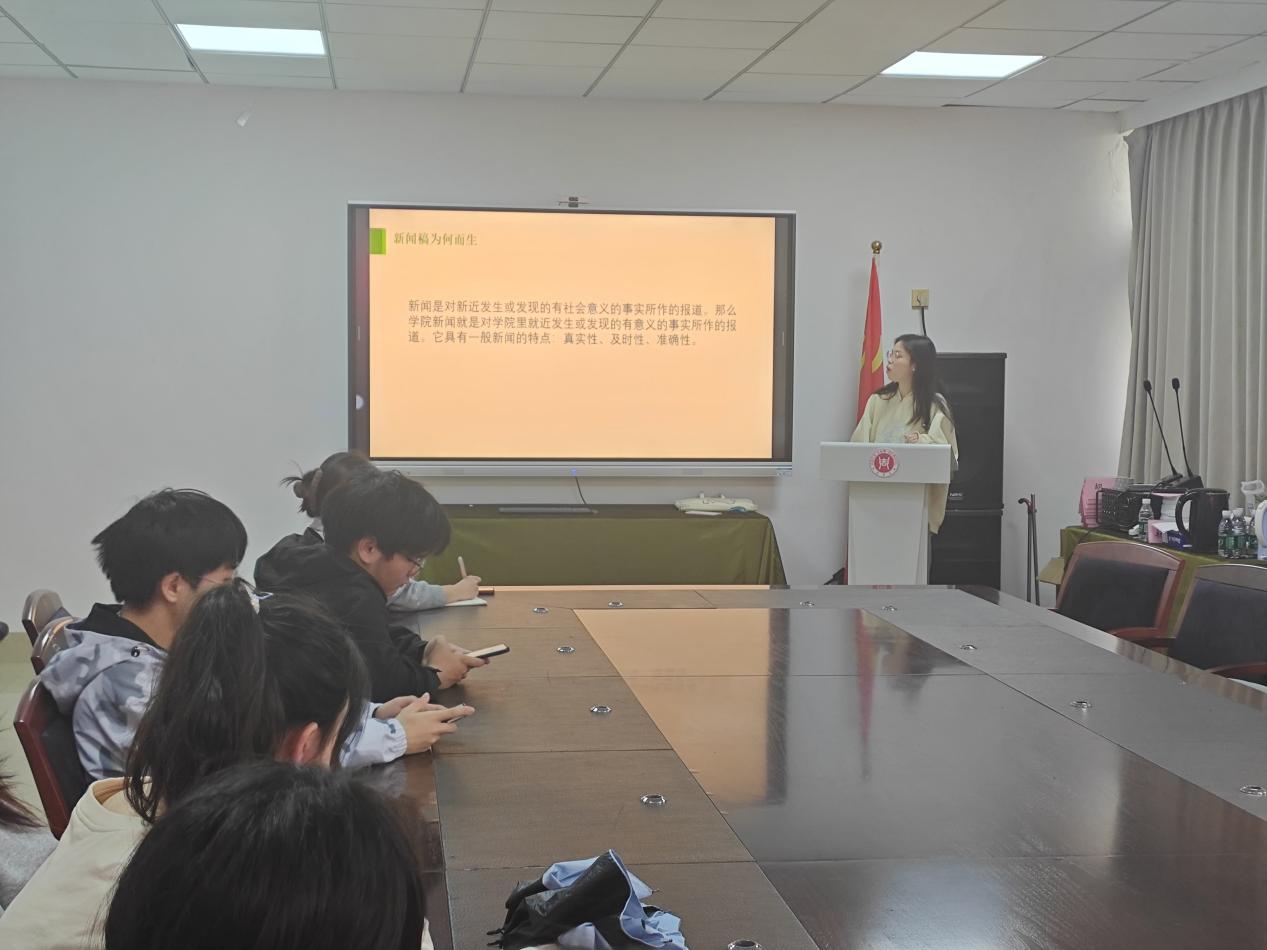 此次培训由汤逊湖青年传媒中心文编万垚鑫主讲,她从新闻稿框架、正文写作及图片规范三方面入手,细致讲解了新闻稿撰写的具体要求。她强调,真实性、准确性及时效性是新闻稿的生命力,提醒大家在写稿时不仅要注重稿件质量,也要注意其时效性。