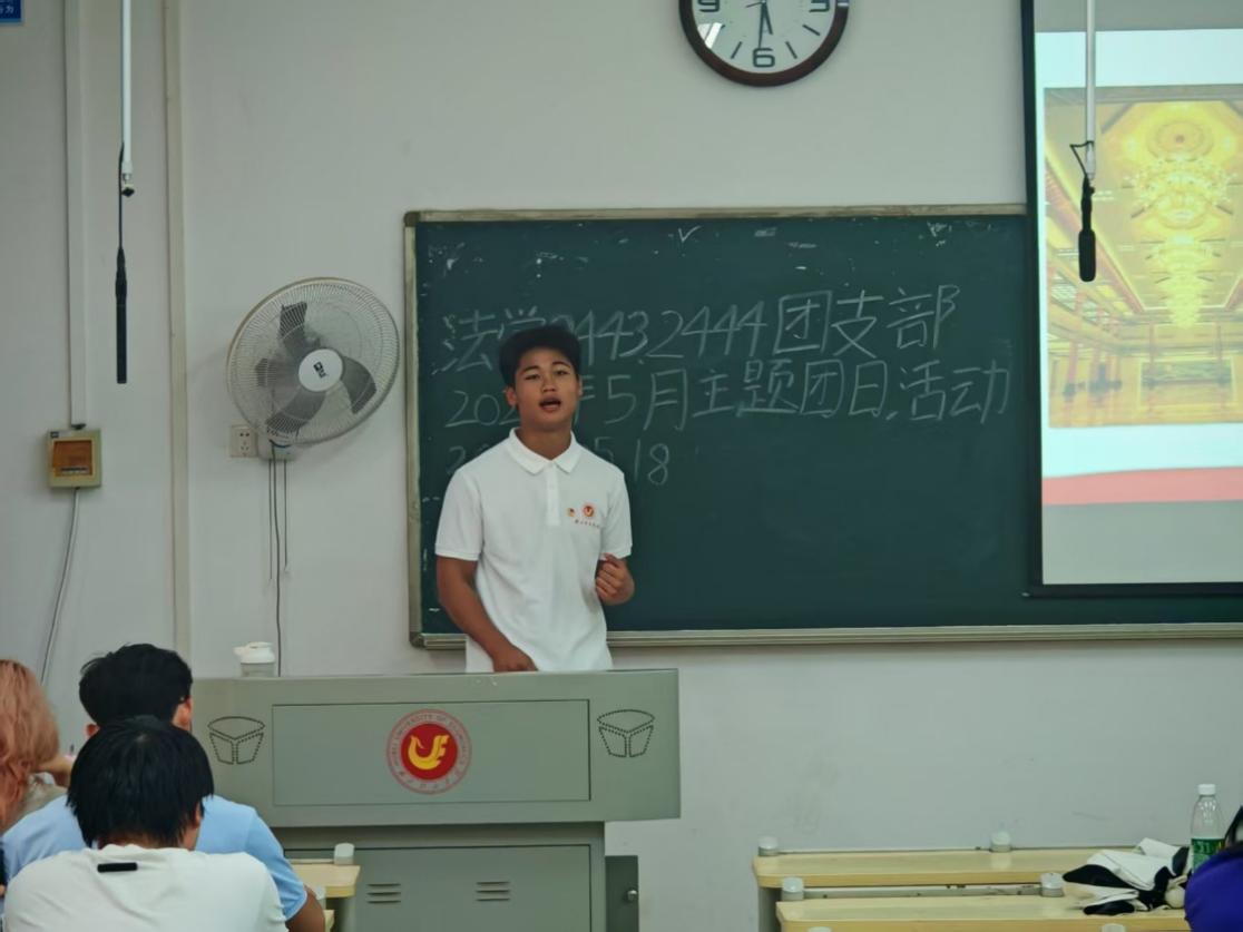 本网讯(通讯员:赵亚文)5月18日晚,400全讯白菜网官网“经叹号”青年宣讲队成员李运祥在法学2444团支部开展一场主题为“两会聚春声,同心赴新程”的宣讲活动。