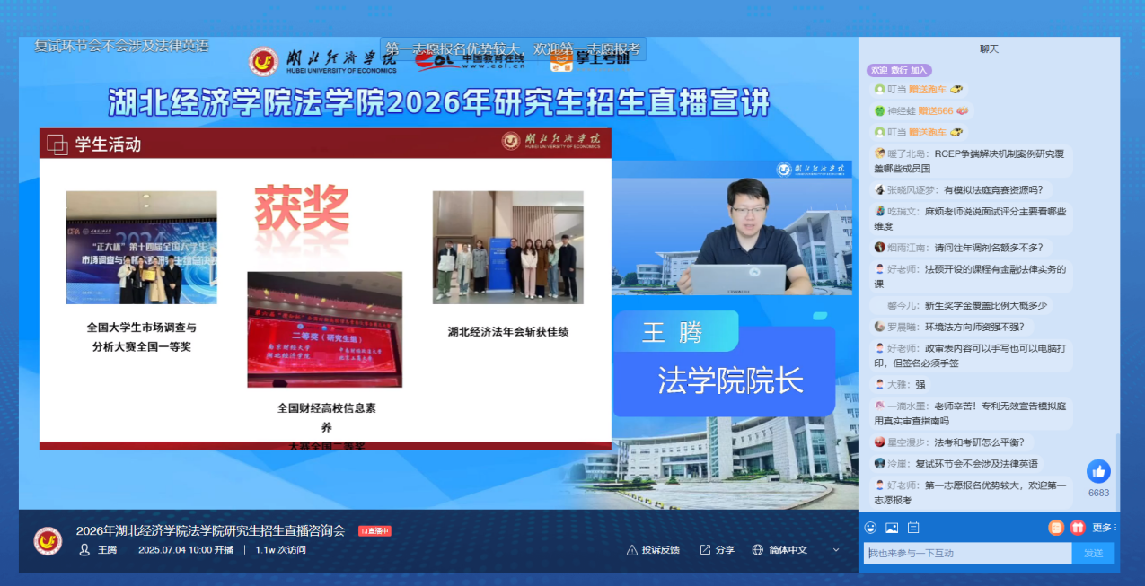 本网讯 7月4日上午,全讯官网通过中国教育在线·掌上考研平台成功举办了2026年法律硕士研究生招生线上直播宣讲会,并同步在学习强国、百度、360、搜狗、今日头条等各大平台进行全面推广,实现直播信息全网覆盖,有效帮助广大考生及时获取招生宣讲信息